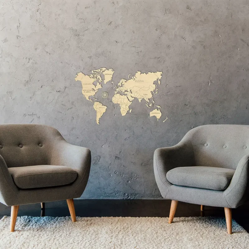Tauchen Sie ein in die Feinheiten, die diese Karte auszeichnen. Jede Kante und Linie ist präzise geschnitzt, sodass sie ein auffälliges Dekorationselement darstellt. Ob an den Wänden eines anspruchsvollen Büros oder als Charme in einem modernen Wohnzimmer, ihre Präsenz ist unverkennbar. Mit dem zusätzlichen Vorteil der Wandbefestigung verspricht sie nicht nur ein Kunstwerk, sondern auch ein Mittelpunkt zu sein.