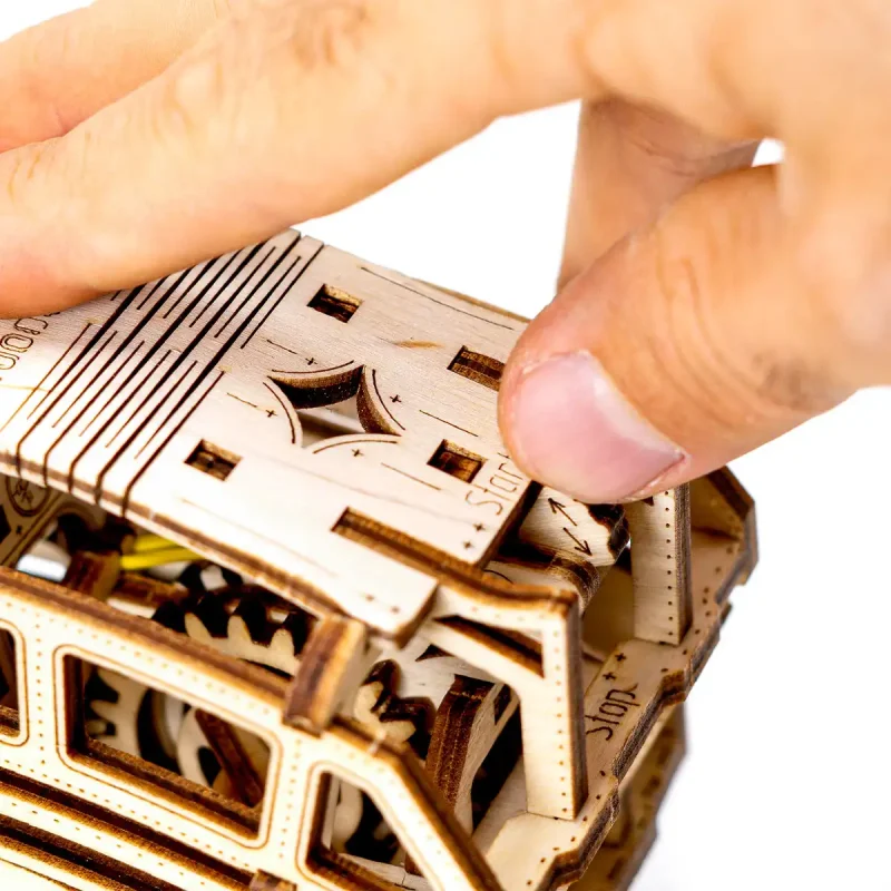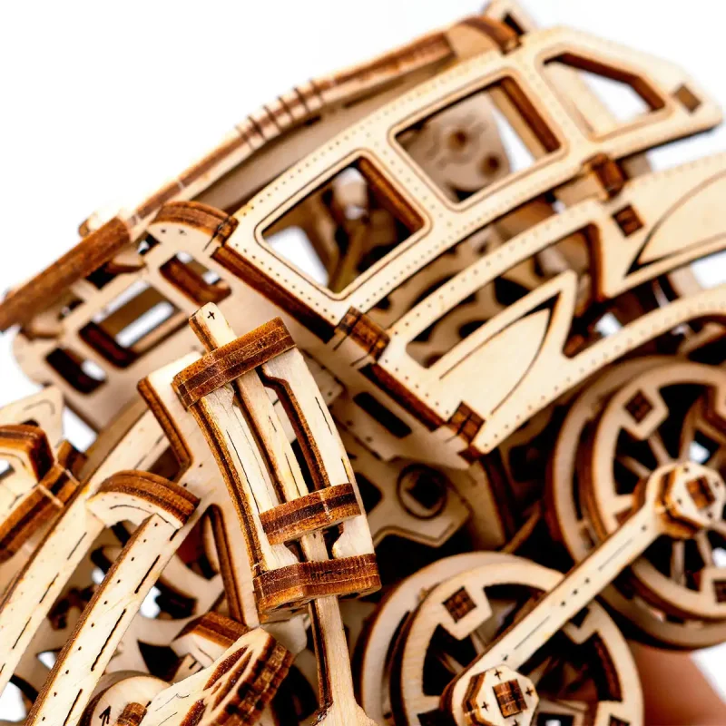 Das 3D Holzpuzzle Zug stellt Ihnen den Dream Express vor, ein Meisterwerk aus hochdichtem Faserplatten-Birkenholz. Dieses Modell ist mehr als ein einfaches Puzzle; es ist ein Tor in eine Ära, in der der Dampf regiert und die stilistischen Nuancen des Steampunk widerhallen.