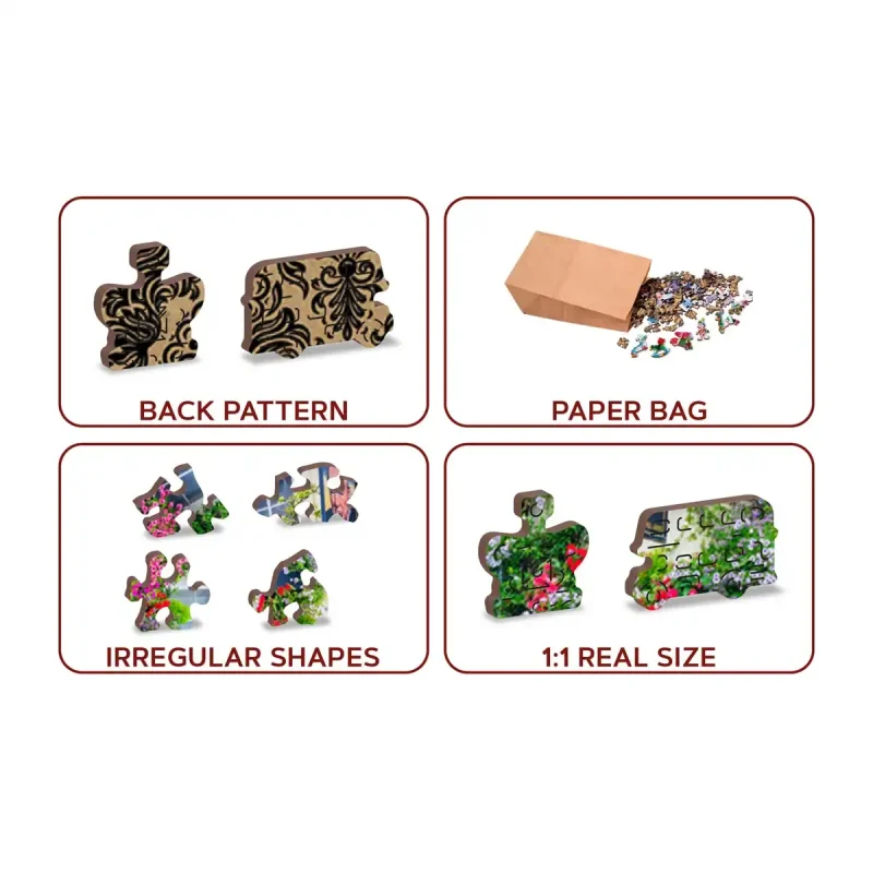 Dieses Holzpuzzle, direkt aus dem Herzen Europas, fängt das lebendige Leben einer Londoner Straße ein. Ein klassischer Pub, dessen Fassade mit blühenden Blumen geschmückt ist, bildet das Herzstück dieses kunstvollen Designs. Die lebendigen Farben versprechen ein bezauberndes visuelles Erlebnis und machen das Zusammensetzen sowohl herausfordernd als auch unterhaltsam.