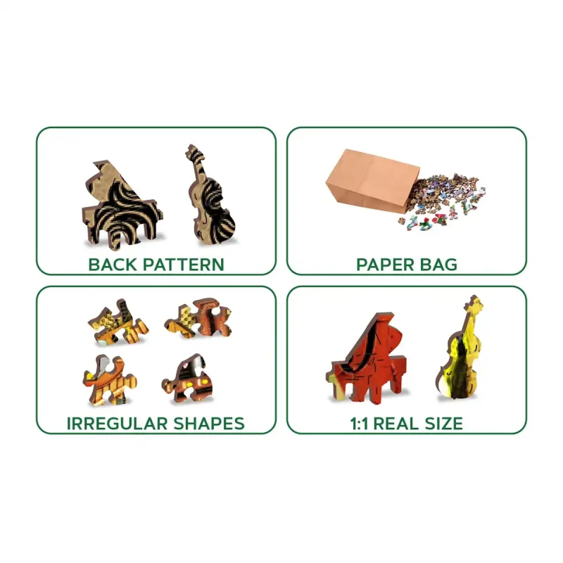 Standout features of this artwork include its meticulously crafted components. Every piece is unique, each with its distinctive shape. Enriching the assembly experience are the large thematic segments – be it wildlife or iconic landmarks, each segment narrates a tale of its own.