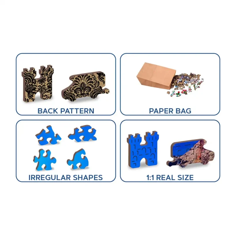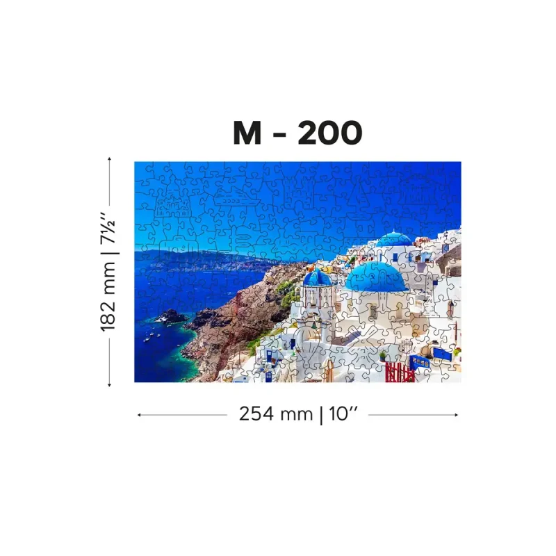 Dieses Holzpuzzle bringt den ätherischen Charme von Santorini direkt in Ihre Hände. Die tiefblauen Farben des Meeres, das strahlende Weiß der Architektur und die magische Atmosphäre Griechenlands werden in jedem Teil prächtig eingefangen.