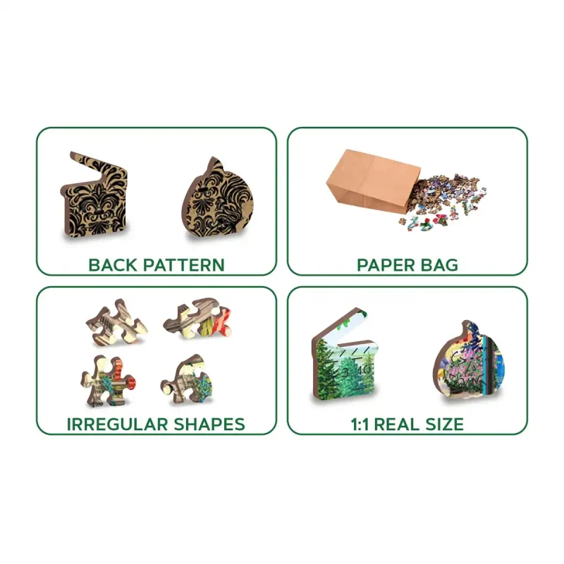 Unser Sortiment reicht über verschiedene Themen von Wildtieren bis Reisen, wobei jedes Puzzle charakteristische Segmente aufweist. Diese einzigartigen Elemente, die mit dem übergreifenden Thema übereinstimmen, garantieren, dass jedes Zusammenbauerlebnis einzigartig ist.